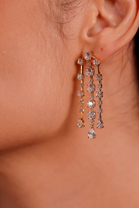 Brinco Franja com Zircônias Banhado a Ouro 18k – Coleção SER – RIAD Semijoias