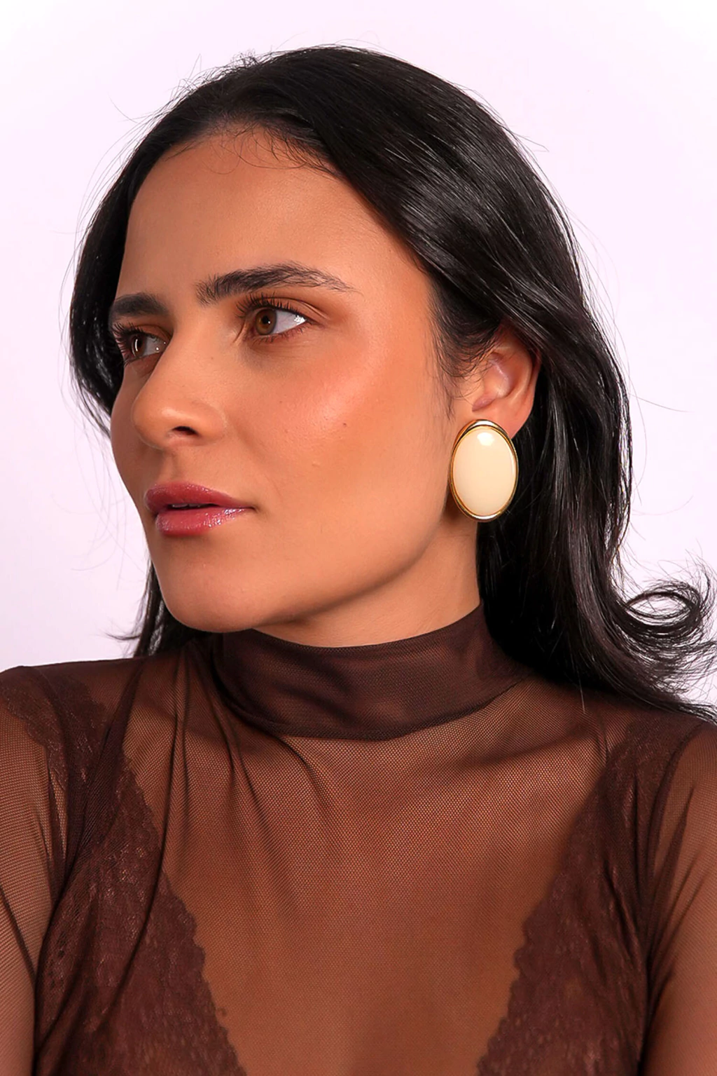 Brinco Oval Resina Off Banhado a Ouro 18k – Coleção SER – RIAD Semijoias