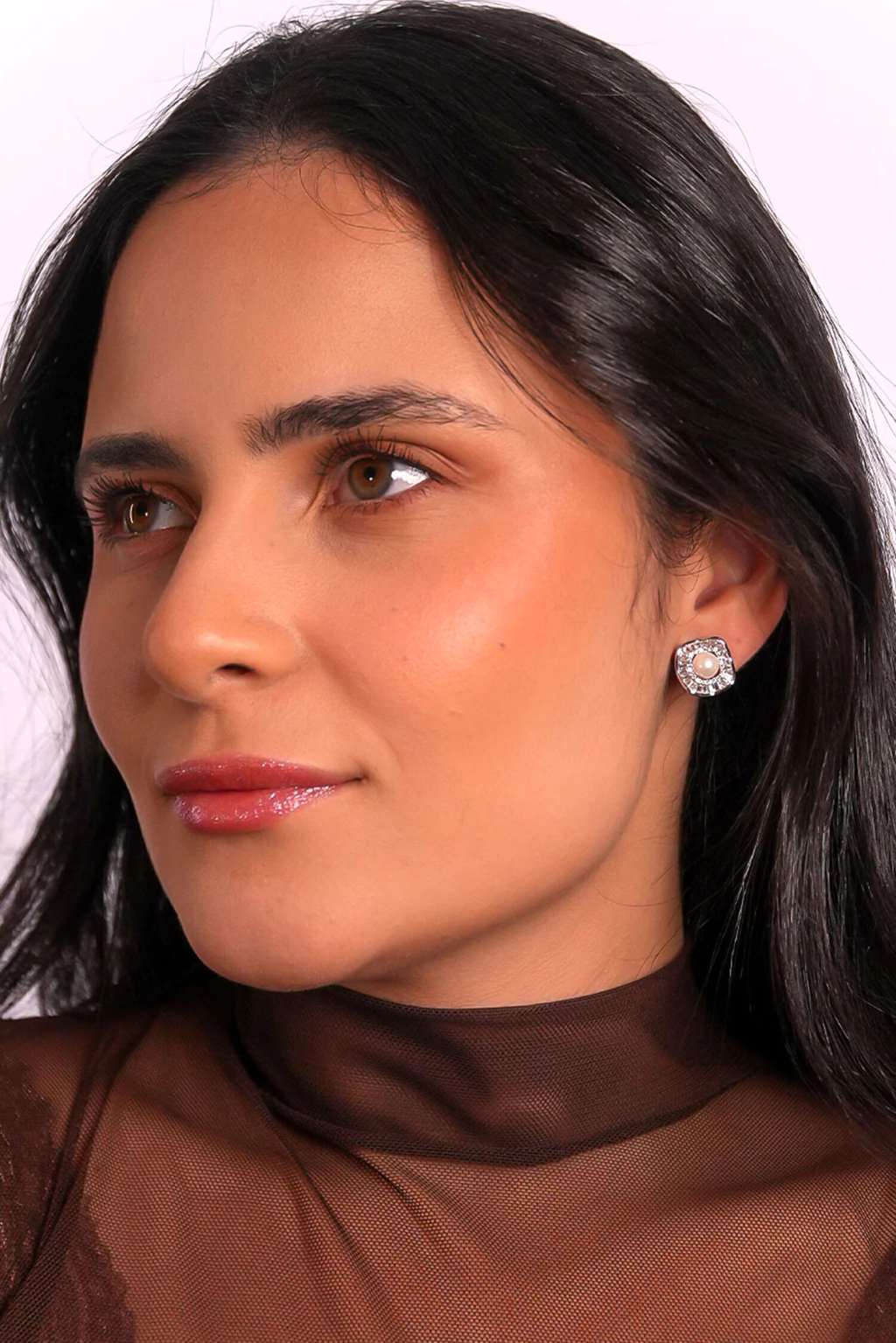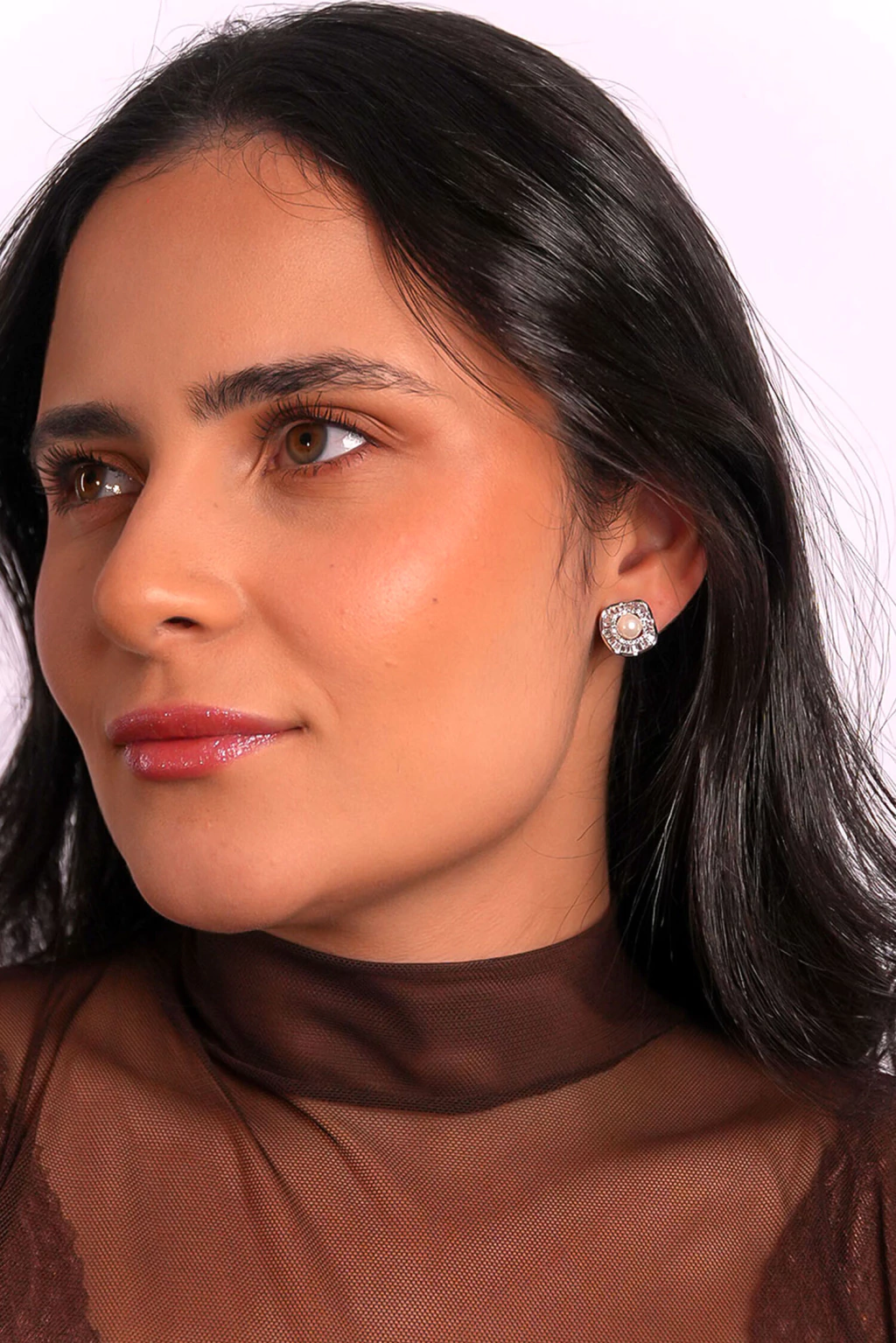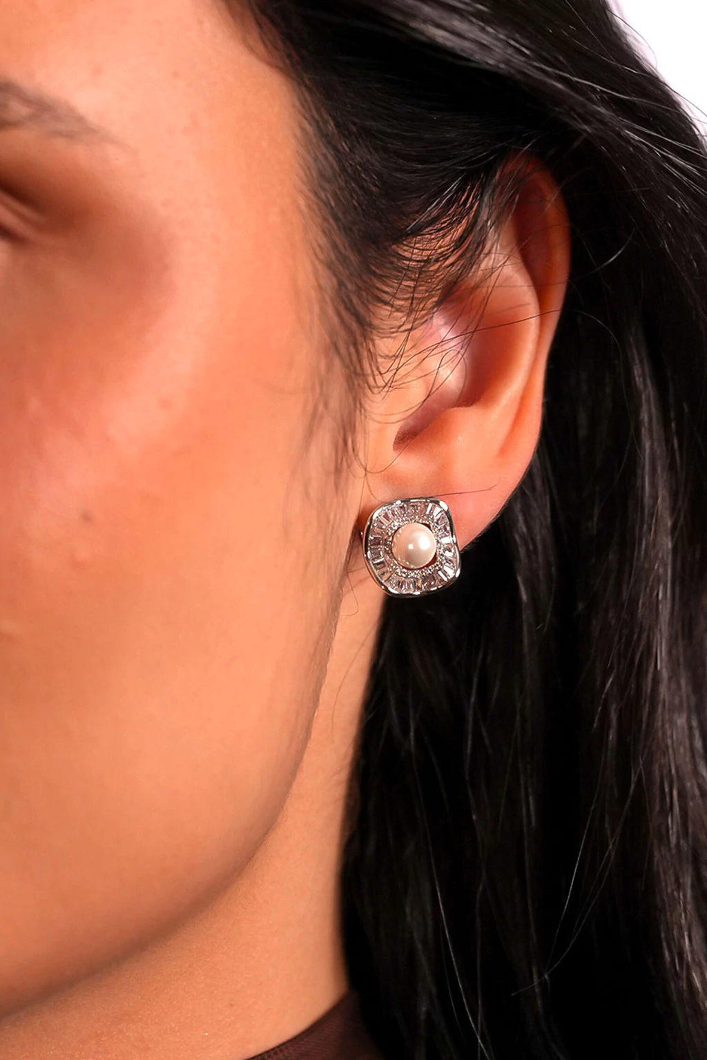 Brinco Pérola Central com Zircônia Banhado a Ródio Branco – Coleção SER – RIAD Semijoias