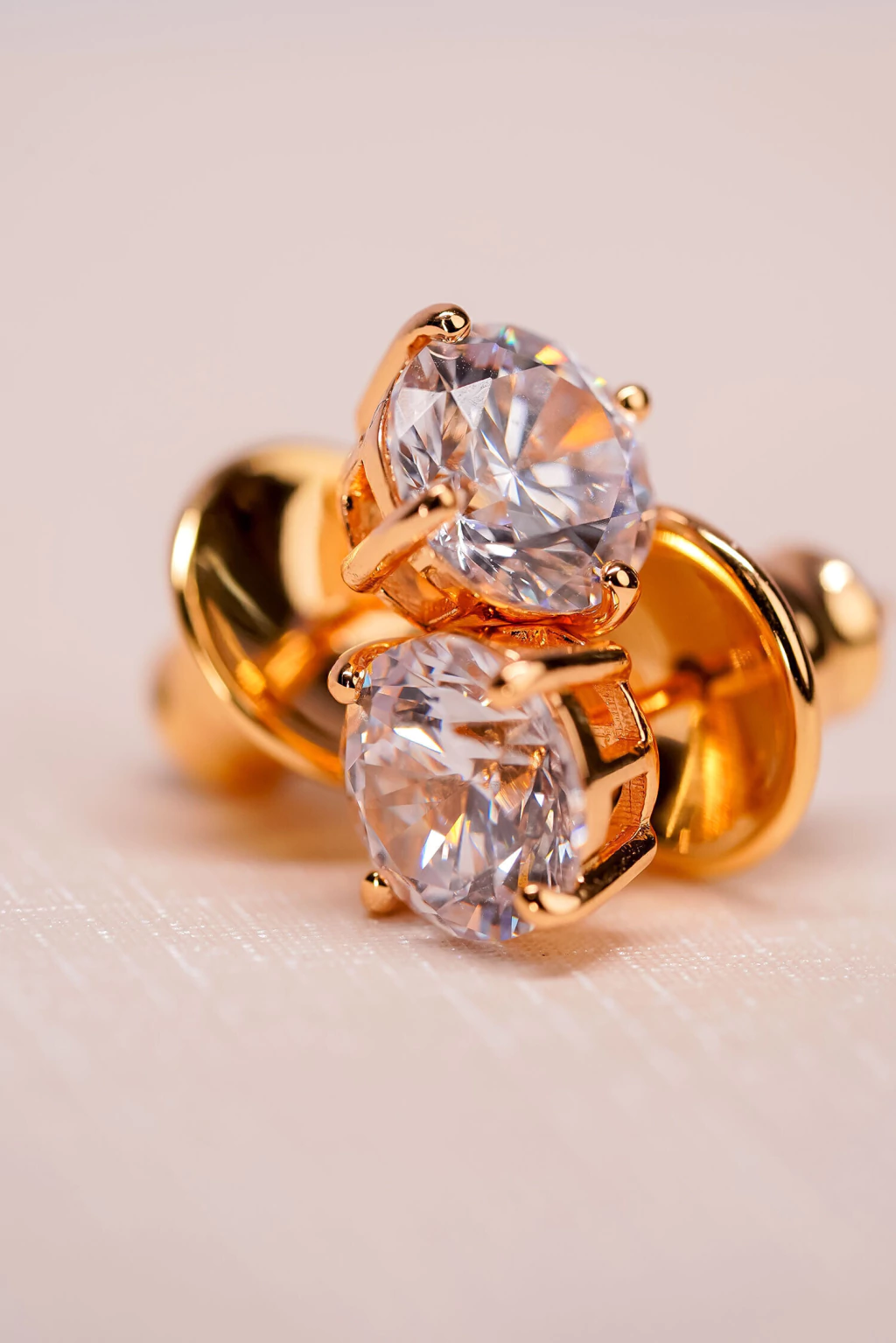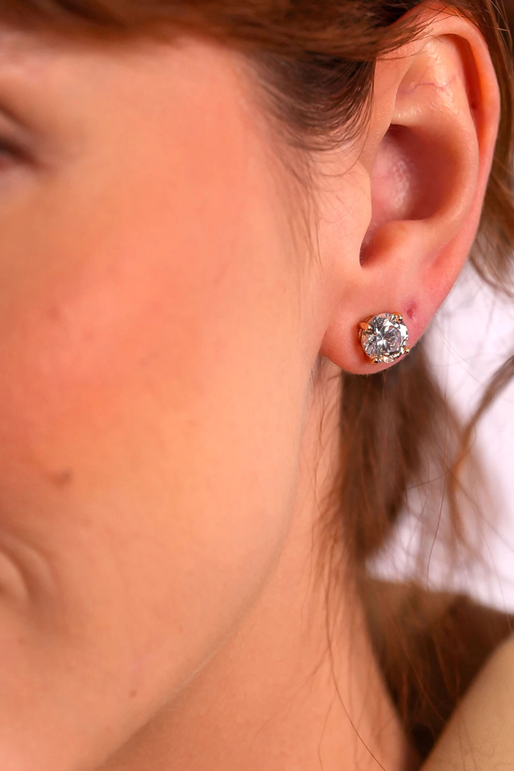 Zircônia 8 mm, lapidação brilhante, banho ouro 18k, acabamento polido, modelo stud/fixo.